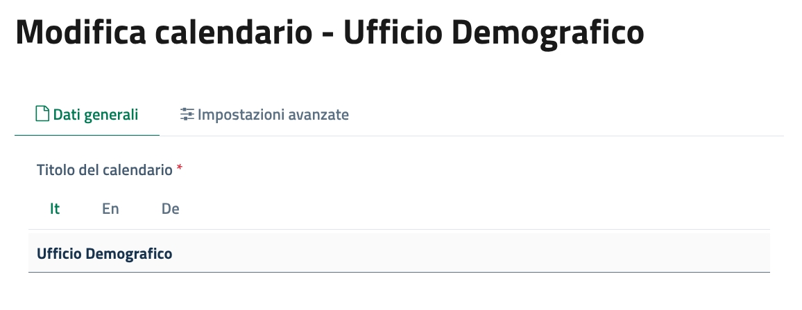 È consigliabile che il nome del calendario sia identico o quantomeno simile a quello dell'ufficio a cui viene associato, così che sia facilmente riconoscibile.