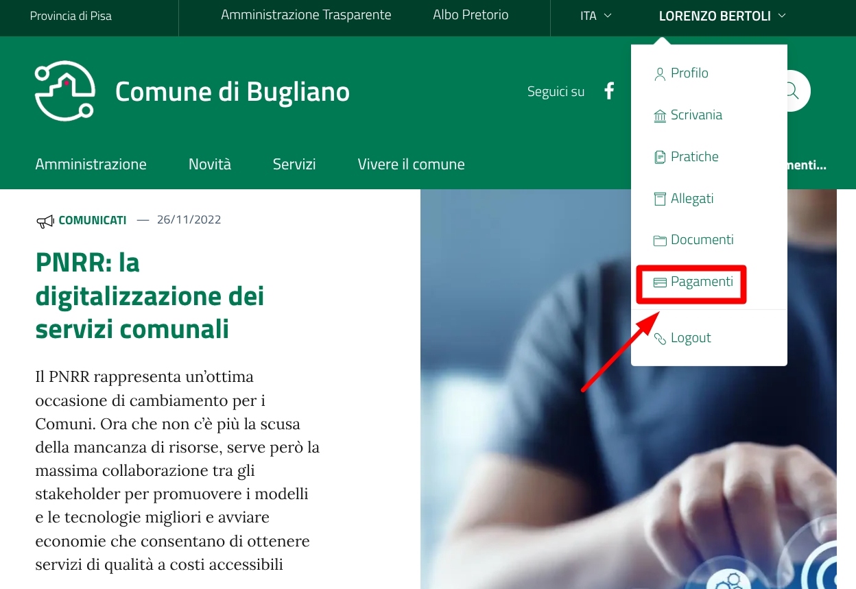 I pagamenti inoltrati al cittadino sono recuperabili anche dalla sezione "Pagamenti" dell'Area personale