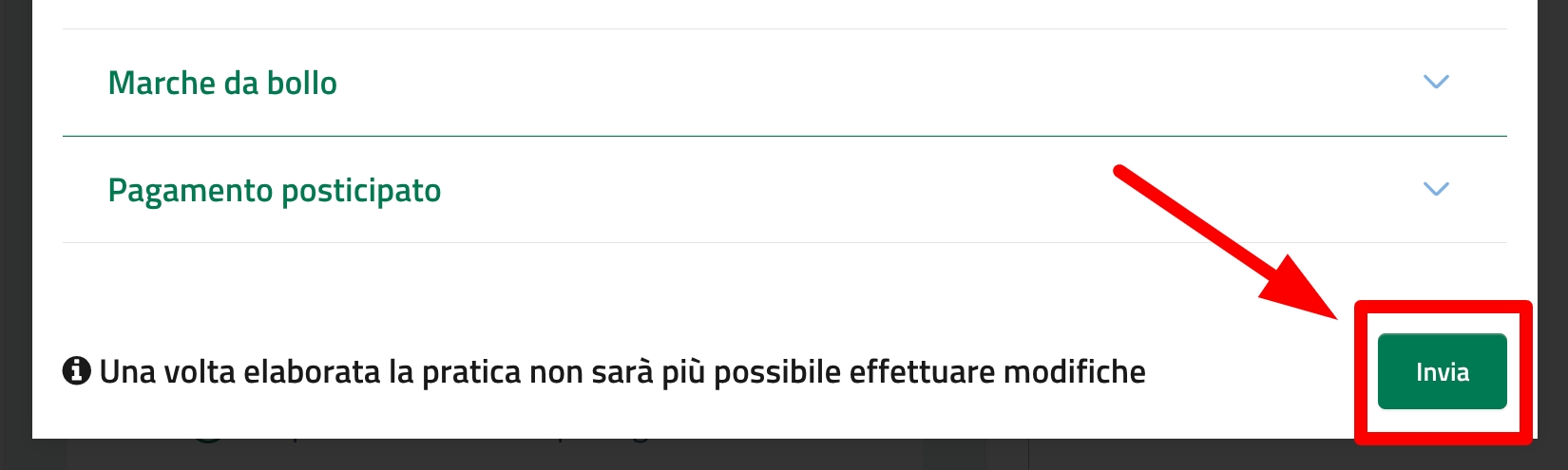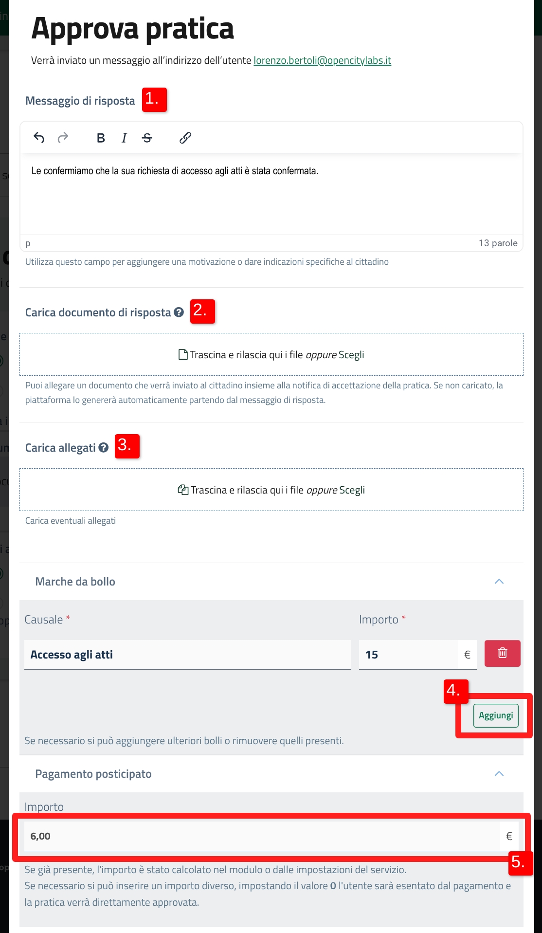 se configurato nel servizio, inviare una richiesta di pagamento bolli in fase di rilascio (5).