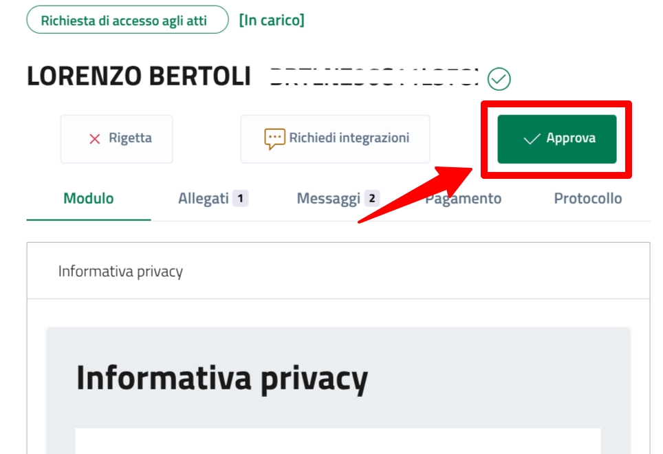 In questo modo, la pratica passerà allo stato "Parzialmente approvata"