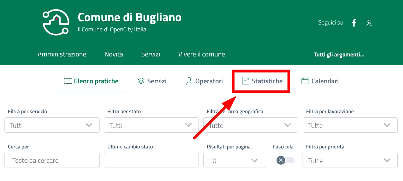 Per monitorare l'andamento delle pratiche aperte, accedi alla sezione "Statistiche" del menù di navigazione.