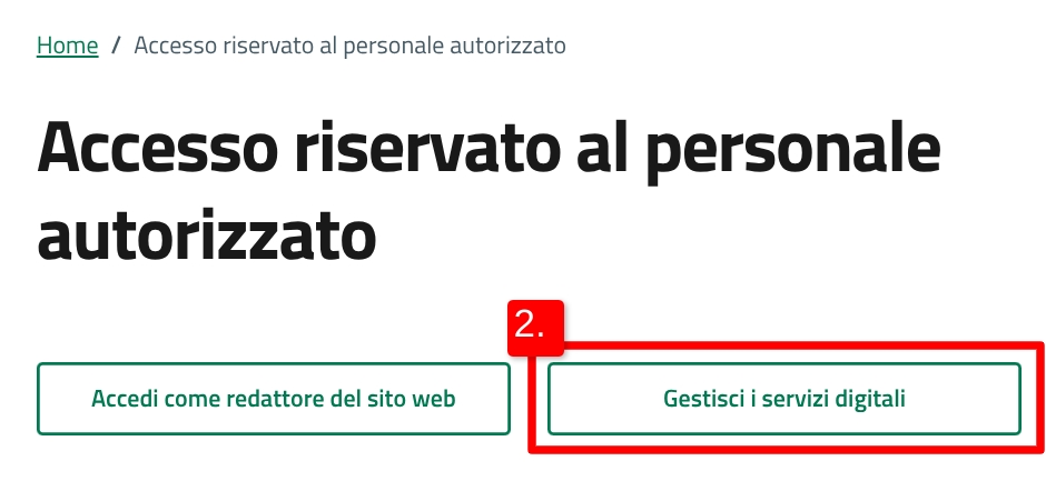 L'operatore seleziona "Gestisci i servizi digitali" (2), inserisce username e password (3) e clicca su "Login" (4).