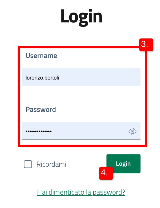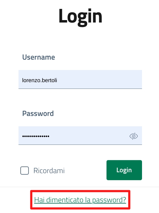 L'operatore può creare una nuova password tramite il link "Hai dimenticato la password?" collocato nella pagina di login